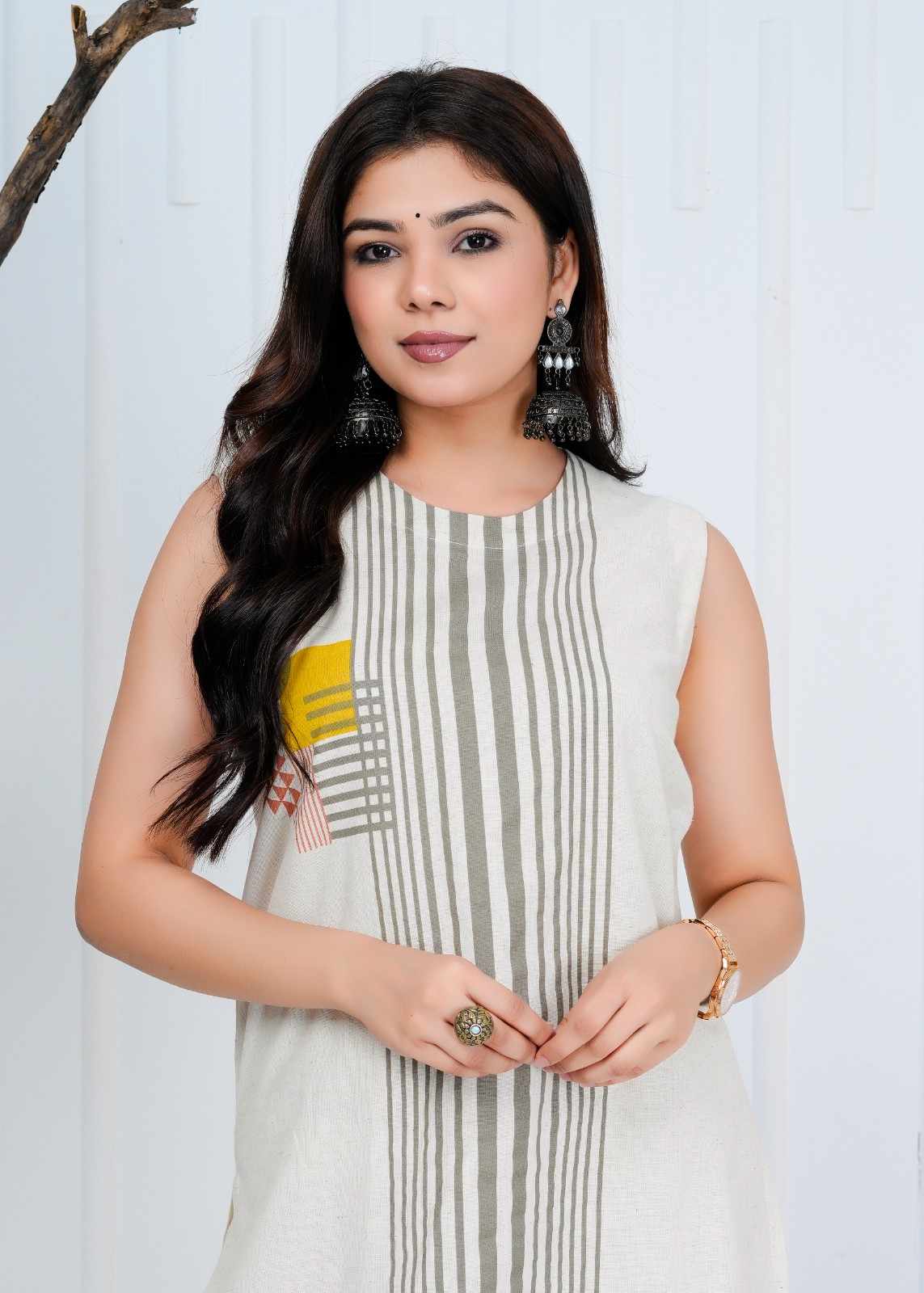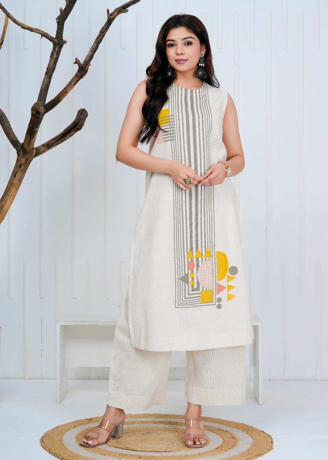 Flex Cotton Coordset featuring subtle geometry canvas panel design. Top Length:44' , Bottom Length:34'
